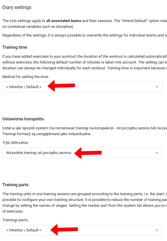 Die Tagebucheinstellungen haben direkten Einfluss auf bestimmte globale Einstellungen, die Sie als Manager als Standard-Tagebucheinstellungen festlegen können. Natürlich haben Trainer in vielen Fällen die Wahl, ob sie die globalen Einstellungen einer Einrichtung übernehmen oder bestimmte Elemente individuell einstellen möchten.