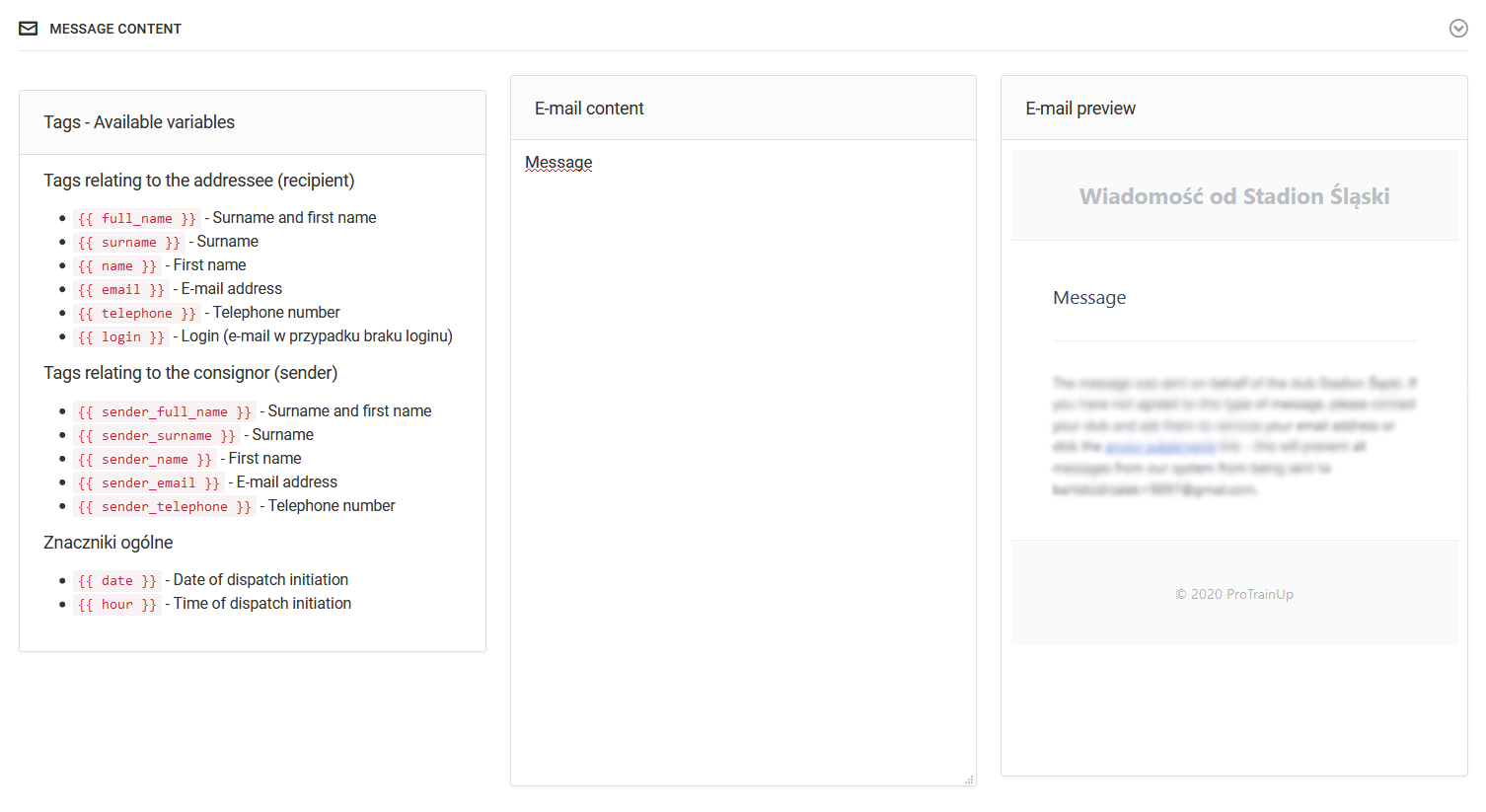 Το επόμενο βήμα είναι να καθορίσετε τις παραμέτρους της καμπάνιας, τις οποίες αναφέραμε στο κεφάλαιο σχετικά με τις συνεισφορές. Στη συνέχεια, προσθέστε το περιεχόμενο του μηνύματος. Πρέπει να θυμάστε ότι σε περίπτωση sms, η υπέρβαση του ορίου των 140 χαρακτήρων θα έχει ως αποτέλεσμα την αποστολή δύο μηνυμάτων κειμένου ως ένα μήνυμα. Αυτό μπορεί να οδηγήσει σε ταχύτερη χρήση των ορίων μηνυμάτων σας.