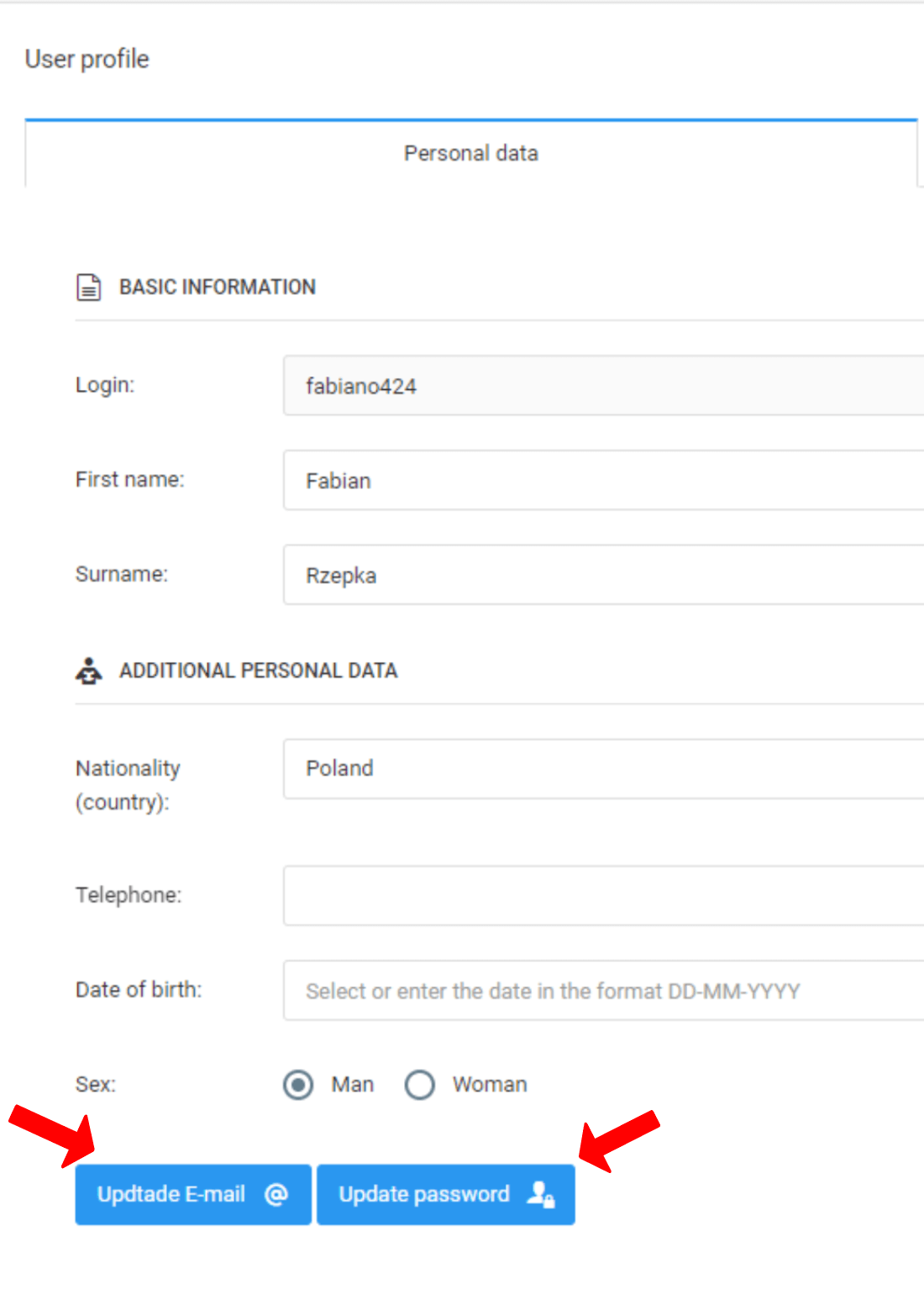 Чтобы изменить свой адрес электронной почты, используемый в системе ProTrainUp, или пароль для входа, щелкните свое имя в правом верхнем углу. Затем в появившемся меню выберите пункт «Изменить профиль». Следующий шаг - нажать «обновить электронную почту» или «обновить пароль». После выбора правильной опции система попросит вас ввести текущий пароль и новый адрес электронной почты или пароль.